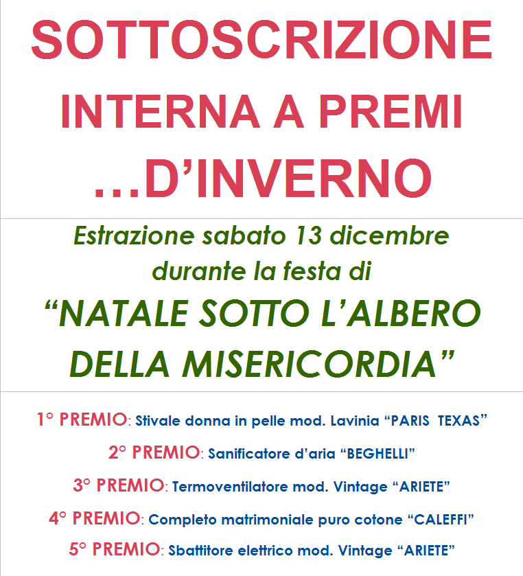 Vi aspettiamo numerosi ad acquistare i biglietti per la nostra "Sottoscrizione d'Inverno " con ricchi premi in palio :
