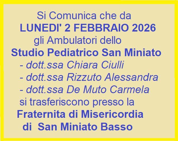 Lo Studio Pediatrico si trasferisce nei locali della Misericordia